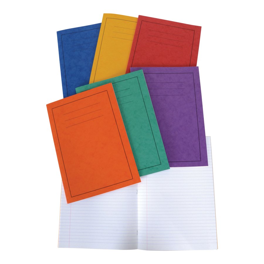 Ruled exercise book for schoolwork.