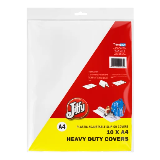 Pack of 10 transparent book covers that protect textbooks and notebooks from wear, spills, and daily handling.