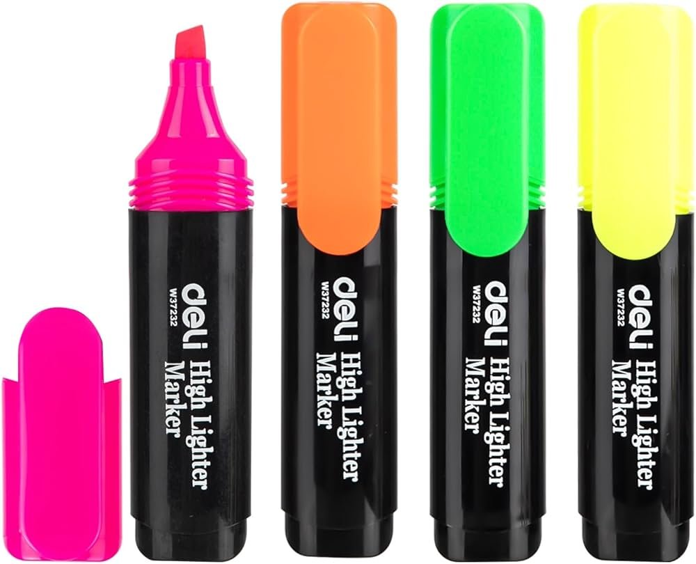 Set of 4 highlighters with vibrant colors and consistent coverage, perfect for emphasizing key text without bleeding through most paper types.