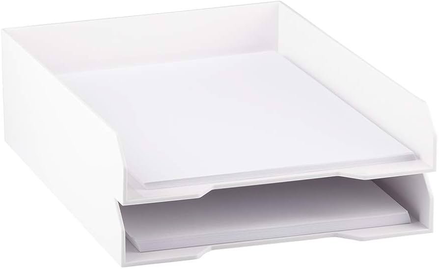 Two stackable trays to separate documents by priority or project, helping maintain a clean workspace.